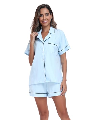 More information about EA'S SECRET Womens Pajamas Set 100% Cotton Soft Short Sleeve Sleepwear Button Down Nightwear Summer Pj Sets S-XXL