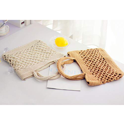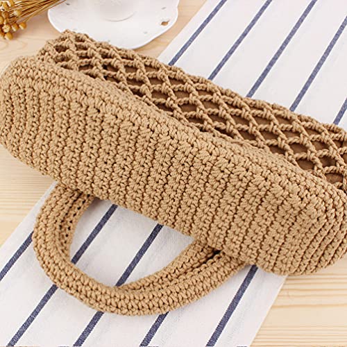 HOT ! Straw Shoulder Beach Bag Cotton Thread Hand-crocheted Bag Handmade Shoulder Bag Large Capacity Messenger Bag for Women (Brown)