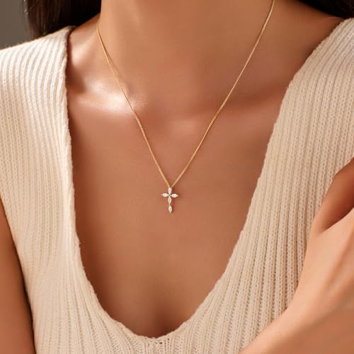 925 Sterling Silver Cross Necklaces for Women 14K Gold Plated Non Tarnish Dainty Cubic Zirconia Pendant Necklace for Mom Trendy Simple Cross Charm Chain Wedding Halloween Christmas Jewelry 1