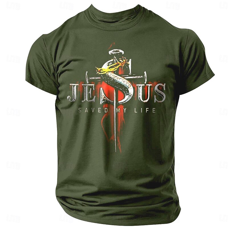 Men's 'Jesus Saved My Life' Graphic Short Sleeve T-Shirt 7