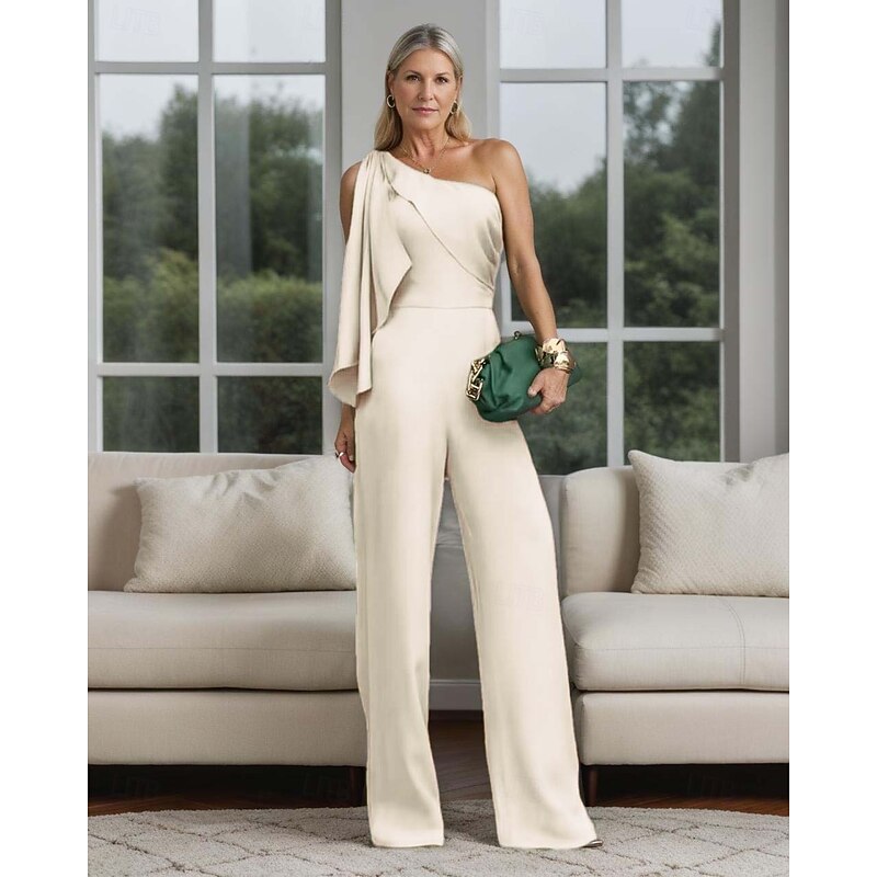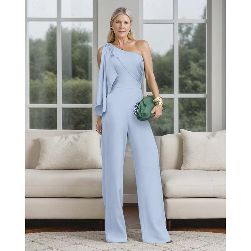 More information about Jumpsuit / Pantsuit Mother of the Bride Wedding Guest Elegant Simple Minimalist One Shoulder Floor Length Polyester Sleeveless with Bow(s) Ruffles Solid Color