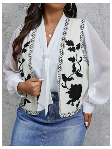 GORGLITTER Women's Plus Floral Cowgirl Vest Open Front Sleeveless Vest