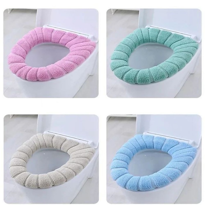 Soft Toilet Seat Cover Pads Thicker Warmer Stretchable Washable Cloth Toilet Fits All Oval Toilet Seats 1