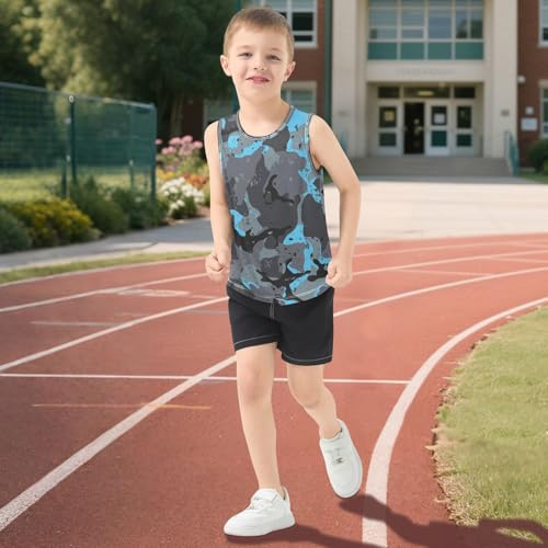 susiyo Modern Blue Gray Camo Boys Sleeveless Tank Top Toddler Athletic T Shirts 6