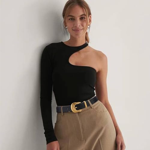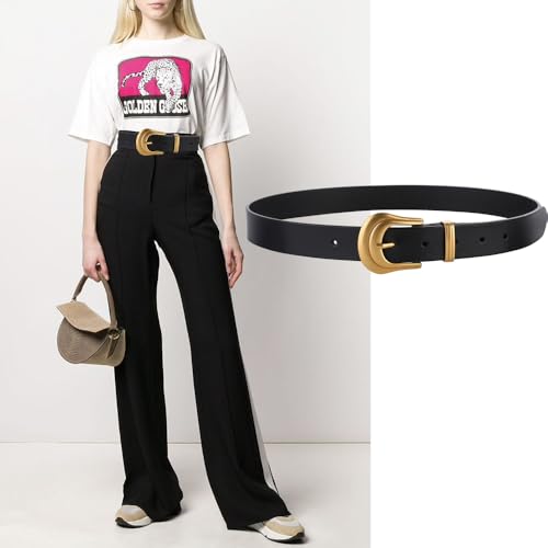 Belts for Women Belt Woman Womens Generic Gold Buckle Black Leather Belt for Jeans Dress Women's Cowgirl 6