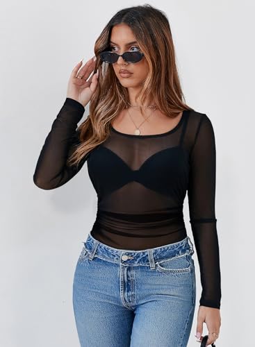 • This mesh shirt is a trendy for fall and winter fashion 2025, perfect wear with pants, jeans,skirt or yoga pants for a fashion y2k look