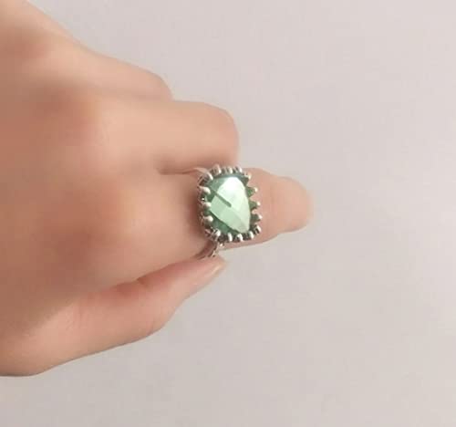 More information about Vintage Silver Mint Green Moonstone Ring 925 Sterling Silver Retro Princess Square Cut Green Moonstone Diamond Prehnite Gemstone Wedding Engagement Ring