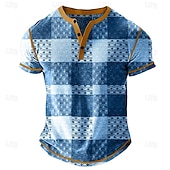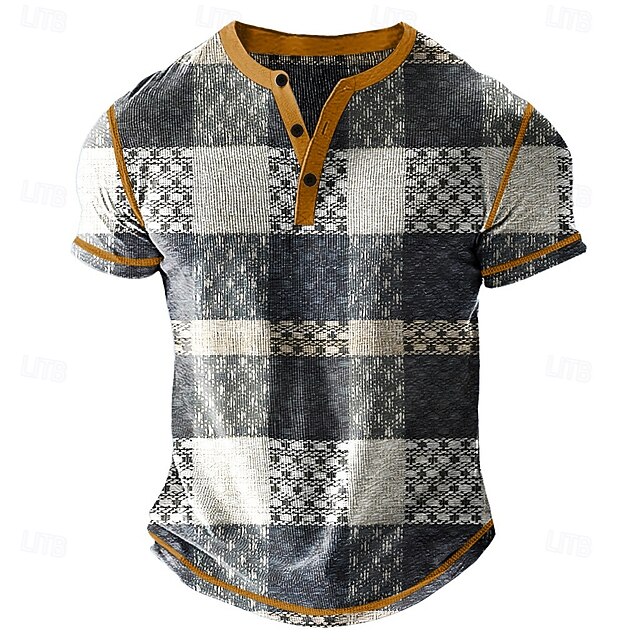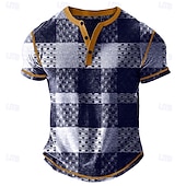 More information about Men's Graphic Plaid Henley Shirt Waffle T Shirt Short Sleeve Daily Retro Vintage Classic Sports Outdoor Casual Holiday Spring & Summer All Seasons Dark Grey Light Blue Navy Blue Henley Henley T-Shirt
