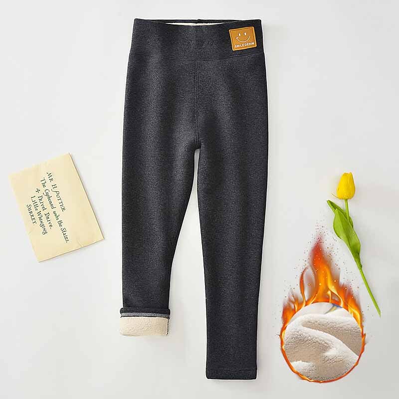 HOT ! Kids Girls' Fleece Lined Leggings Black Pink Light Gray Solid Color Winter Fall Active Outdoor 7-13 Years