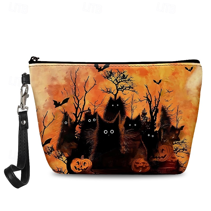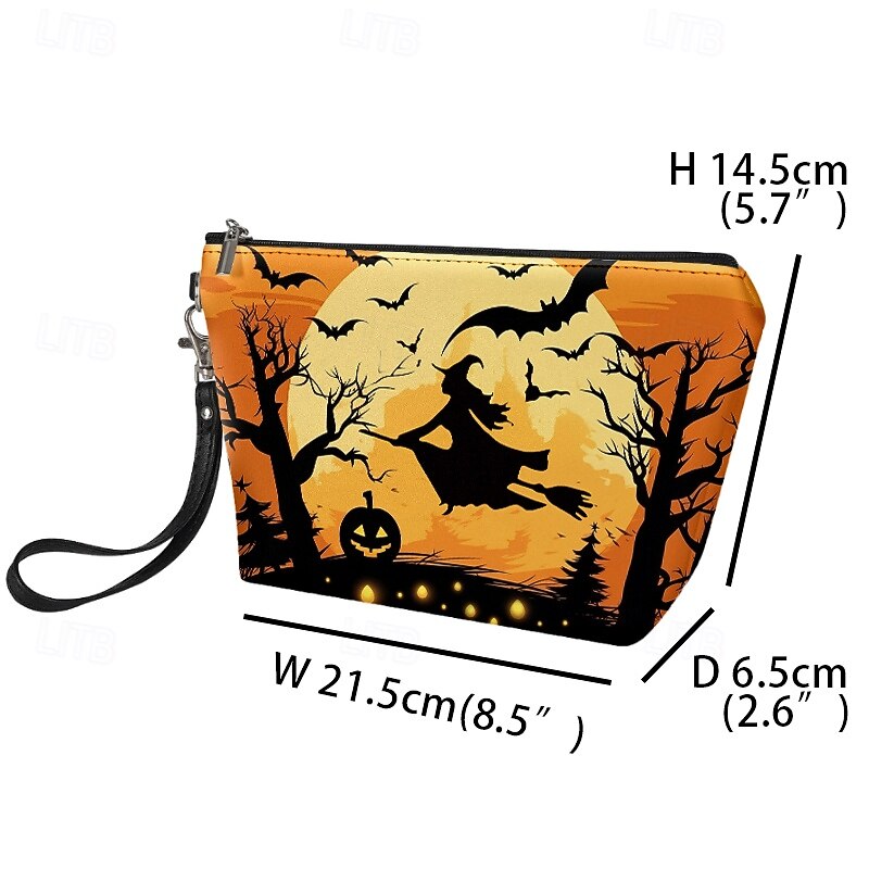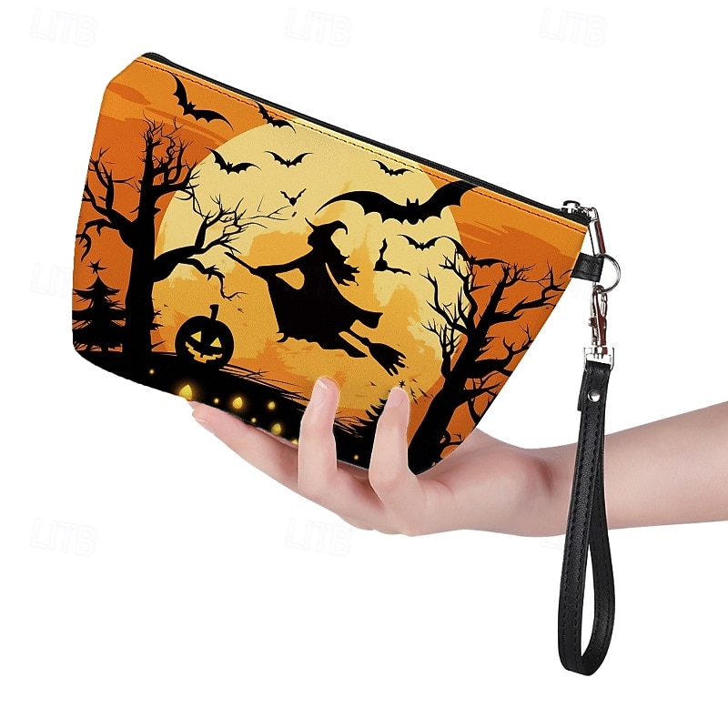HOT ! Halloween Themed Wristlet Bag with Witch and Pumpkin Design - Perfect for Trick-or-Treating and Holiday Parties