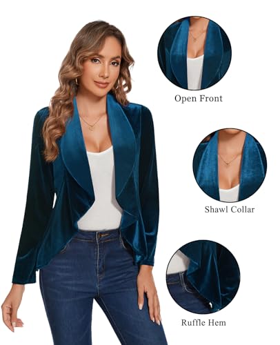 HOT ! MINTLIMIT Velvet Blazers for Women Casual Work Office Long Sleeve Open Front Cardigan Ruffle Suit Jacket Coat Blazer