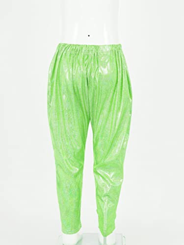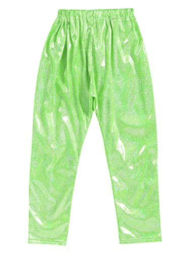 Kids Boys Girls Metallic Shiny Hip Hop Jazz Streetwear Baggy Pants Loose Fit Trousers for Stage Performance Show Fluorescent Green 2-3 Years 4