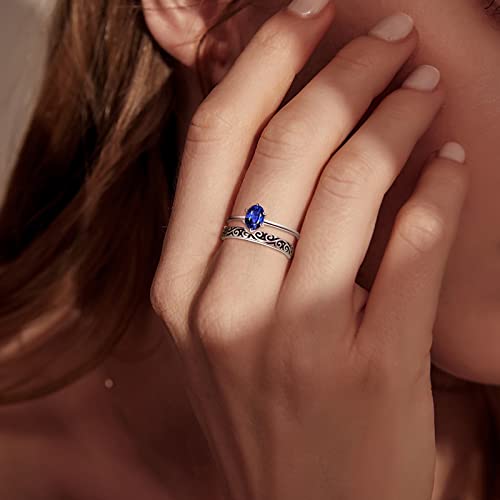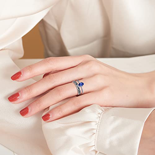 Vintage Wedding Ring Set 925 Sterling Silver 1.0ct Oval Cut Cubic Zirconia Vine Engagement Rings for Women Size 5-10 1