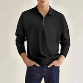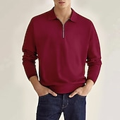 More information about Men's Polo Shirt Zip Polo Outdoor Casual Lapel Quarter Zip Long Sleeve Fashion Basic Solid / Plain Color Quarter Zip Spring & Fall Regular Fit Black White Wine Dark Navy Blue Sky Blue Polo Shirt