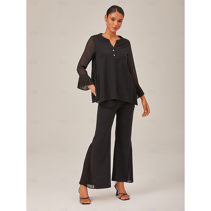 More information about Women's Contrast Design Pleated TENCEL Roma Top Curved Hem Stylish Comfortable Breathable Elegant Daily Work Casual Versatile Fall