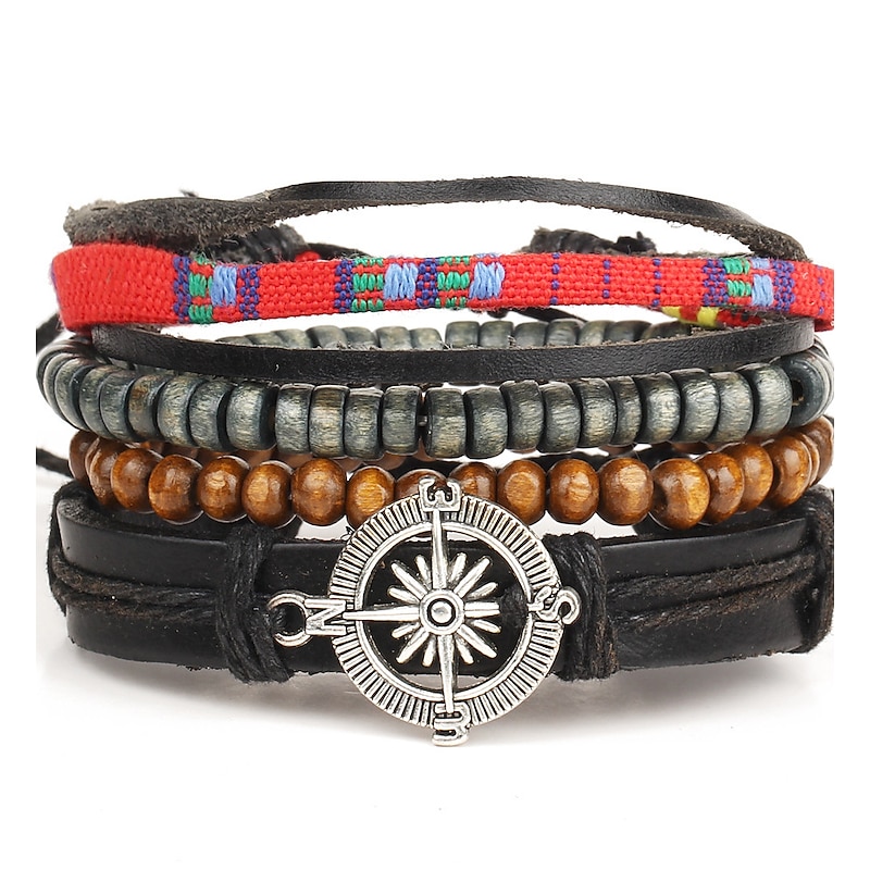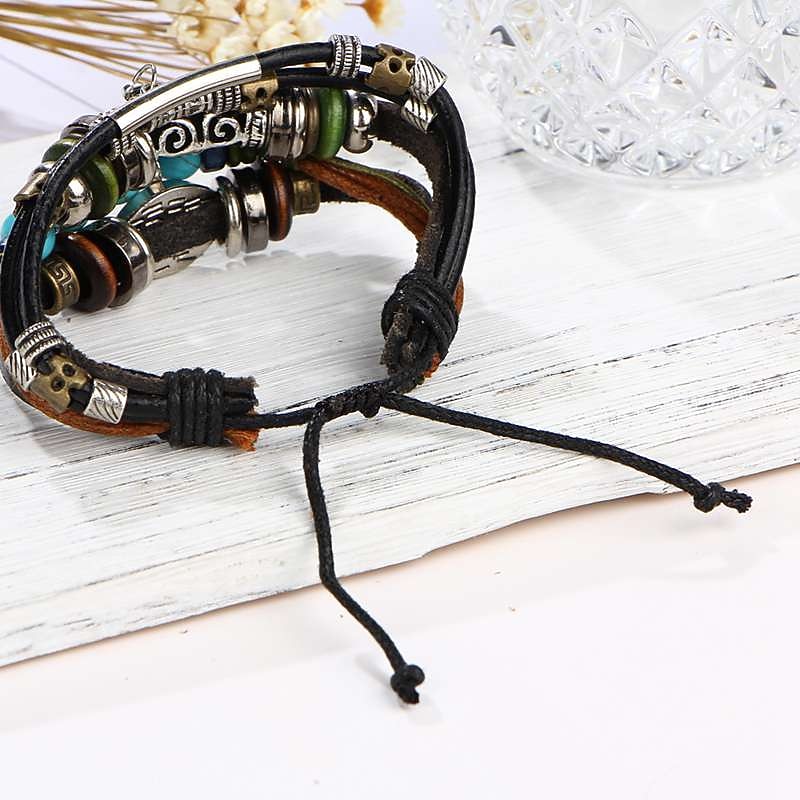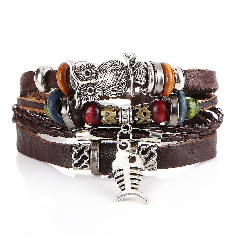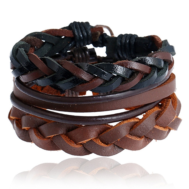 More information about Men's 1PC Cuff Links Leather Bracelet Memory Wire Bracelets Gift Daily Classic Retro Punk Classic Black / Silver Red / Orange Light Brown