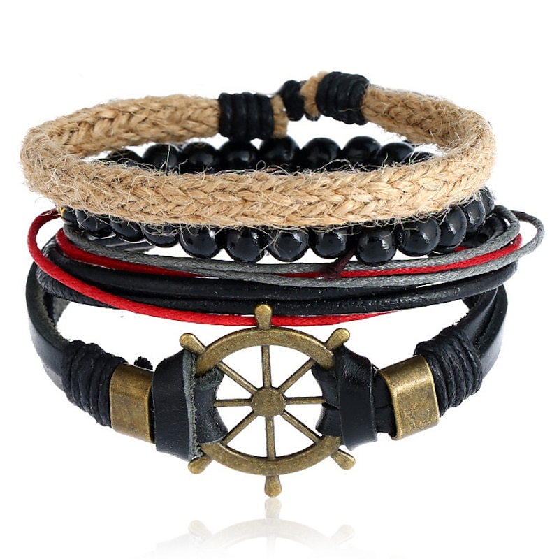 Men's 1PC Cuff Links Leather Bracelet Memory Wire Bracelets Gift Daily Classic Retro Punk Classic Black / Silver Red / Orange Light Brown 4