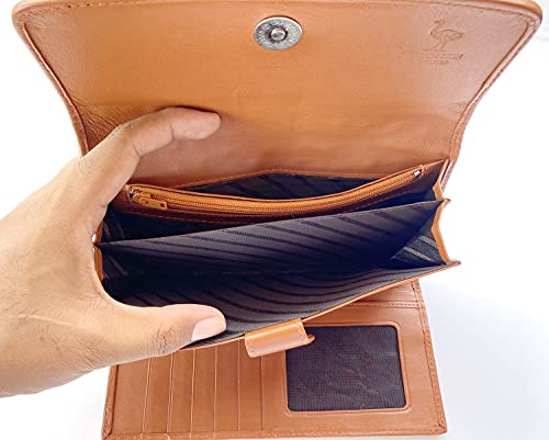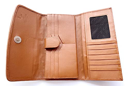 More information about Julie Genuine Real Ostrich Skin Leather Trifold Clutch Long Golden Tan Wallet