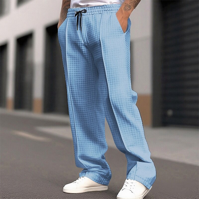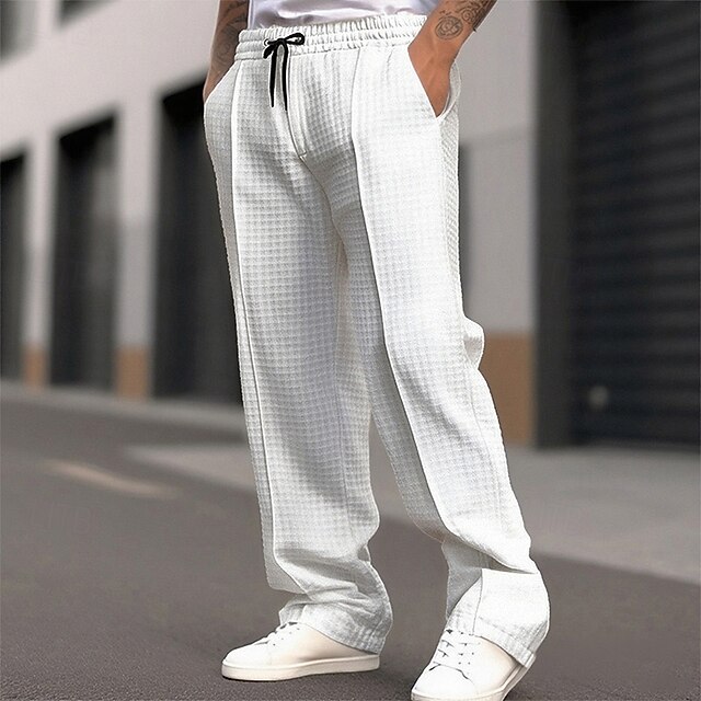 HOT ! Men's Sweatpants Joggers Trousers Waffle Pants Pocket Elastic Waist Drawstring Plain Comfort Sports Outdoor Daily Fashion Casual Black White Micro-elastic