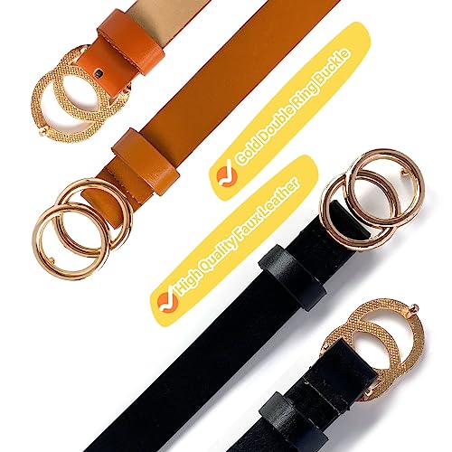 2 Pack Women Leather Belt Waist Belts For Jeans Dress womens leather O Ring belt 3