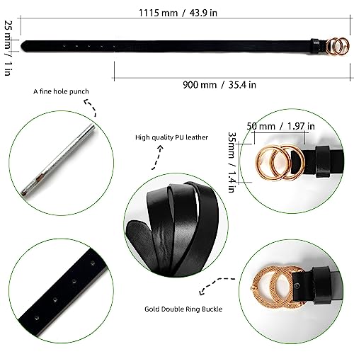 2 Pack Women Leather Belt Waist Belts For Jeans Dress womens leather O Ring belt 6