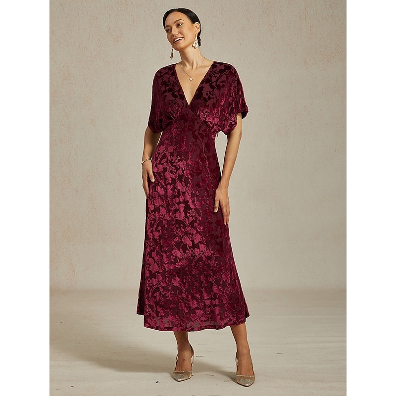 More information about Women's Midi Dress Sheath Dress Elegant Party Party Wedding Guest Cocktail Party Regular Fit Solid Color Floral Sleeveless V Neck Red Summer Spring Fall Winter