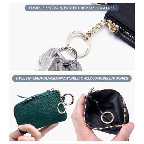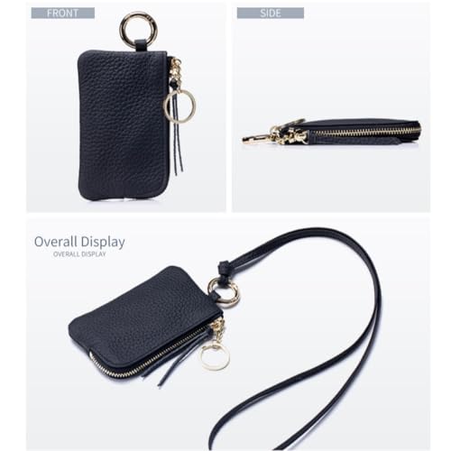 Genuine Leather Neck Wallet Credit Card Holder Key Ring Chain Wallet With Zipper Coins Change Pocket Unisex 6
