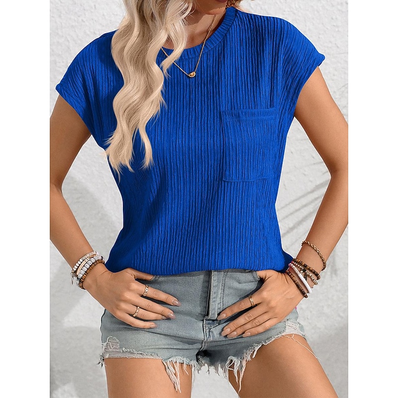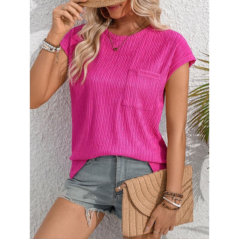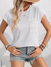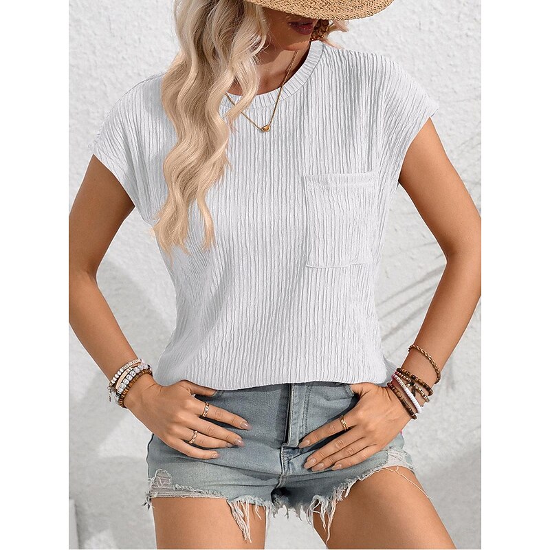 Highlights [Fabric] This Women's Lace T-shirt is crafted from a textured, lightweight fabric that's perfect for summer days. Its breathable material ensures all-day comfort, keeping you cool and stylish whether you're enjoying a vacation or going about your daily routine. [Fit] Featuring a regular fit, this T-shirt is designed to offer a comfortable and relaxed feel. The short sleeves allow for ease of movement, making it an ideal choice for warm weather wear. [Design Highlights] With a simple round crew neckline and a small patch pocket on the chest, this shirt blends practicality with a chic, laid-back style. The understated design adds a fashionable edge without sacrificing comfort. [Occasions] Perfect for vacations and daily outings, the contemporary style of this T-shirt makes it versatile for a range of settings. Pair it with shorts or jeans for a stylish, effortless look suitable for various casual occasions. [Size Range] Available in a wide range of sizes from S to 2XL, this T-shirt accommodates different body types, ensuring a flattering fit for everyone.