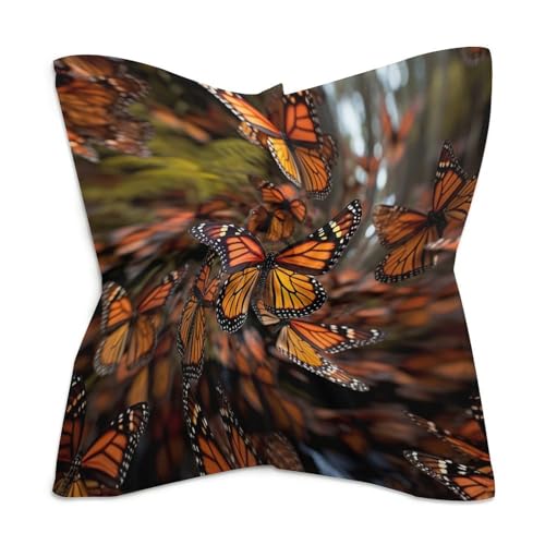 • Versatile Size: Measuring 18 X 18 Inches or 25 X 25 Inches, This Monarch Butterflies Headscarf for Women's Hair Offers the Perfect Amount of Coverage. Monarch Butterflies Large Silk Scarf Effortlessly Fits Most Head Shapes and Covers Your Face and Neck, While Maintaining Perfect Manageability for Multiple Styling Options