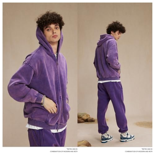 2 Pcs Oversized Mens Hoodies Set Vintage Hoodies for Men Zip Up Sweatshirt Acid Wash Streetwear 6