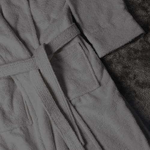 • COZY DESIGN: Features terry belt and 2 belt loops for varying heights, 2 front patch pockets, a shawl collar and fold back style sleeves. Attached loop at the neck allows towel to hang and dry quickly; plush and lightweight to wear around the house