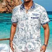 More information about Men's Compass Sailboat Sea Creatures Summer Hawaiian Shirt Button Up Shirt Short Sleeve Hawaiian Resort Vacation Holiday Beach Wear Summer Spring Turndown Collared Shirts Front One Pocket White