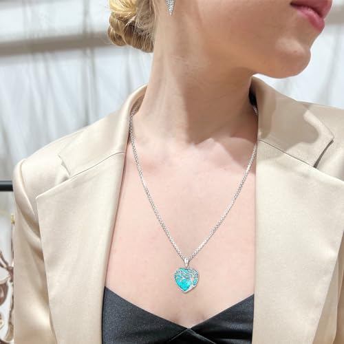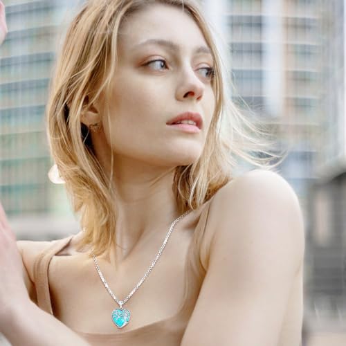 Tree of Life Necklace for Women Sterling Silver Celtic Moon Tree Moonstone Turquoise Pendant Heart Family Tree Necklace for Mother Daughter Sister Gifts
