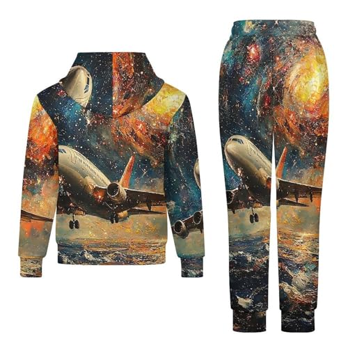 Boys Girls Clothes Outfits 2 Piece Long Sleeve Hoodie Pants Kid Sweatpants, Airplane Galaxy Universe 1