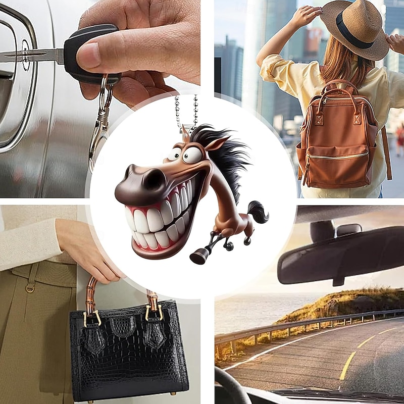Car Mirror Ornament Funny 2D Horse Car Decoration - Prank Cartoon Flat Pendant For Vehicle Decor Men Women Christmas Party Birthday Bag 3