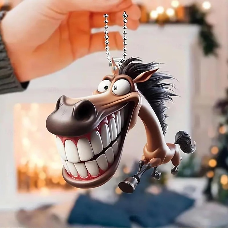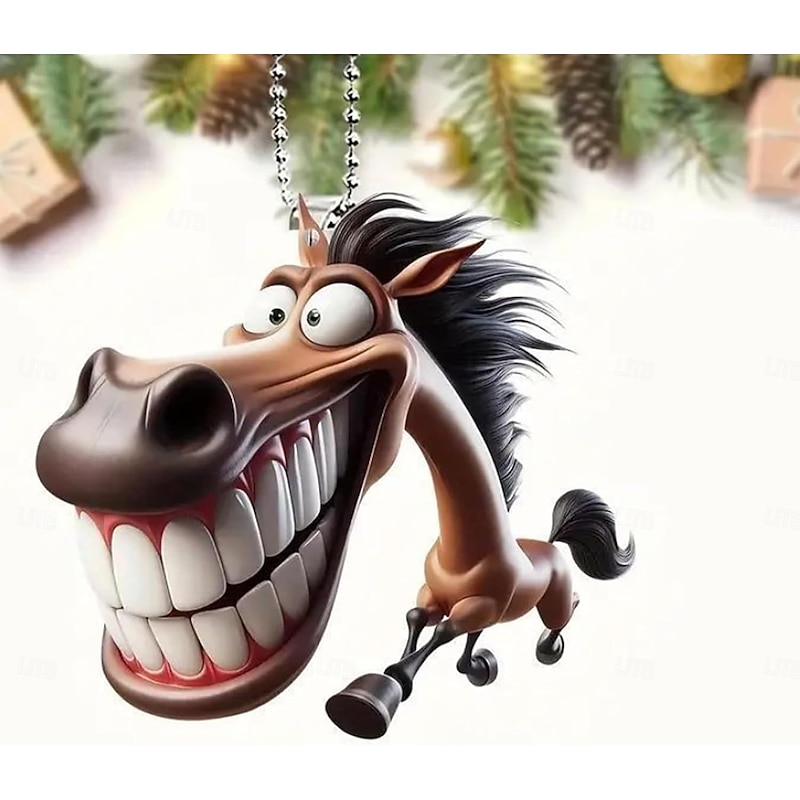 More information about Car Mirror Ornament Funny 2D Horse Car Decoration - Prank Cartoon Flat Pendant For Vehicle Decor Men Women Christmas Party Birthday Bag