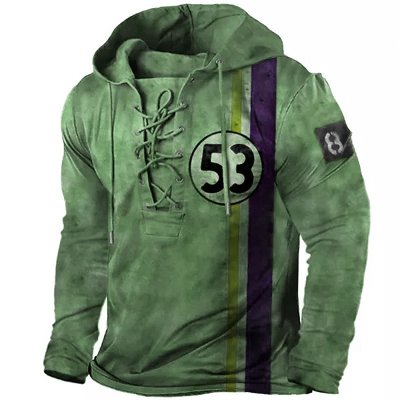 More information about Men's Number Graphic Prints Hoodie Hoodies Sweatshirt Streetwear Designer Long Sleeve Hooded Sports & Outdoor Daily Sports Light Green Blue Lace up Print Spring & Fall Designer