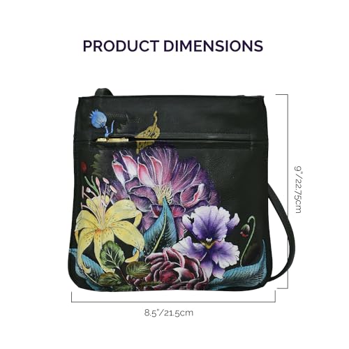 HOT ! Anuschka Women’s Hand-Painted Genuine Leather Slim Crossbody with Front Zip