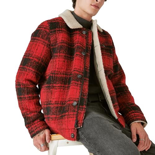 HOT ! Lucky Brand Men's Plaid Faux Shearling Lined Trucker Jacket