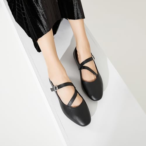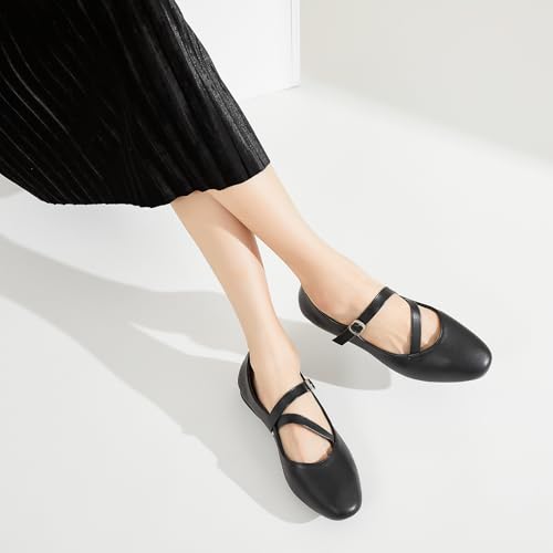Womens Mary Janes Flats Shoes with Cross Strap,Soft Memory Foam Ballet Flats for Women,Black and White Dress Shoes 1