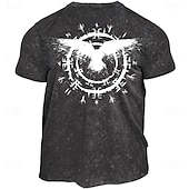 HOT ! Mens Short Sleeve Graphic T-Shirt with Viking Raven & Runic Symbols - Norse Mythology Washed Tee