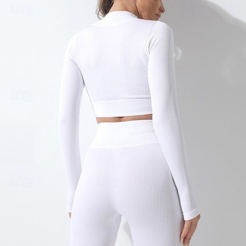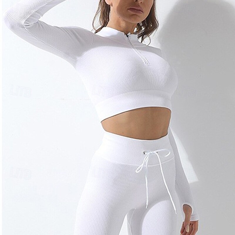 More information about Women's Workout Outfits Sports Bra with Tights Workout Jumpsuit 2 Piece Solid Color Tights Clothing Suit Black White Yoga Fitness Gym Workout High Waist Breathable Soft Long Sleeve Sport Activewear