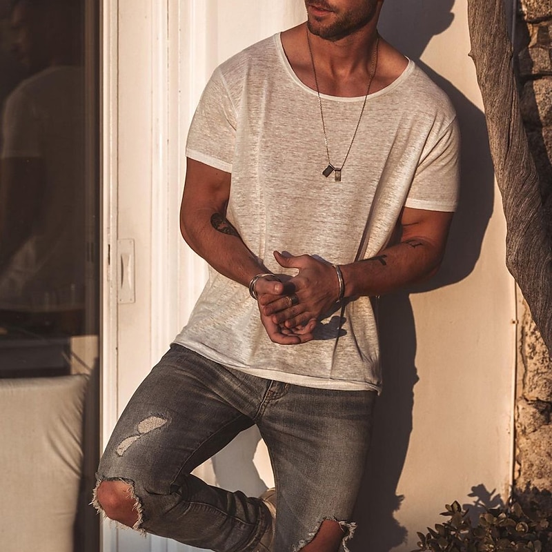 Men's T Shirt Short Sleeve Crew Neck Summer Plain Fashion Classic Comfortable Crewneck Street Casual Sports Black White Blue Top Tee for Men 9