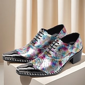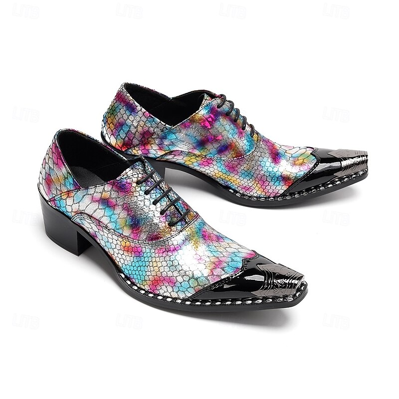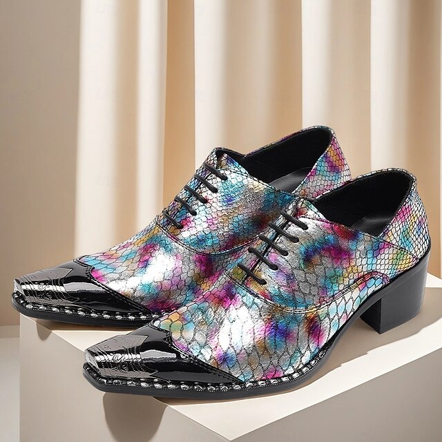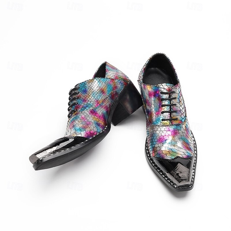 More information about Men's Iridescent Genuine Leather Oxford Shoes with Crocodile Pattern and Pointed Toe, Cowhide Dress Shoes for Stage, Parties and Fashion Events