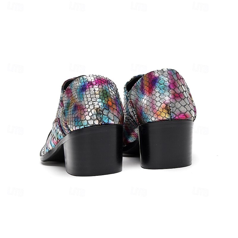 Men's Iridescent Genuine Leather Oxford Shoes with Crocodile Pattern and Pointed Toe, Cowhide Dress Shoes for Stage, Parties and Fashion Events 5