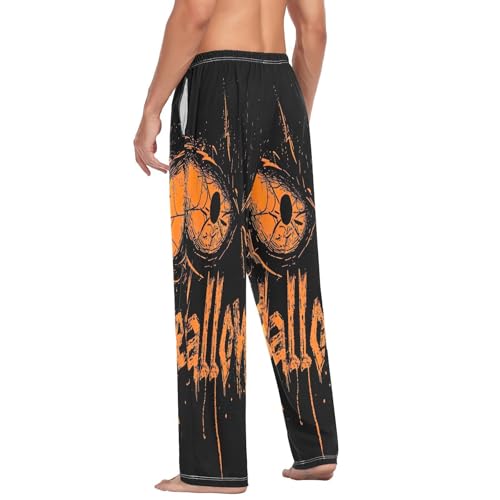 HOT ! Qilmy Halloween Scared Eyes Men's Cotton Pajama Pants, Lightweight Lounge Sleepwear with Drawstring and Pocket