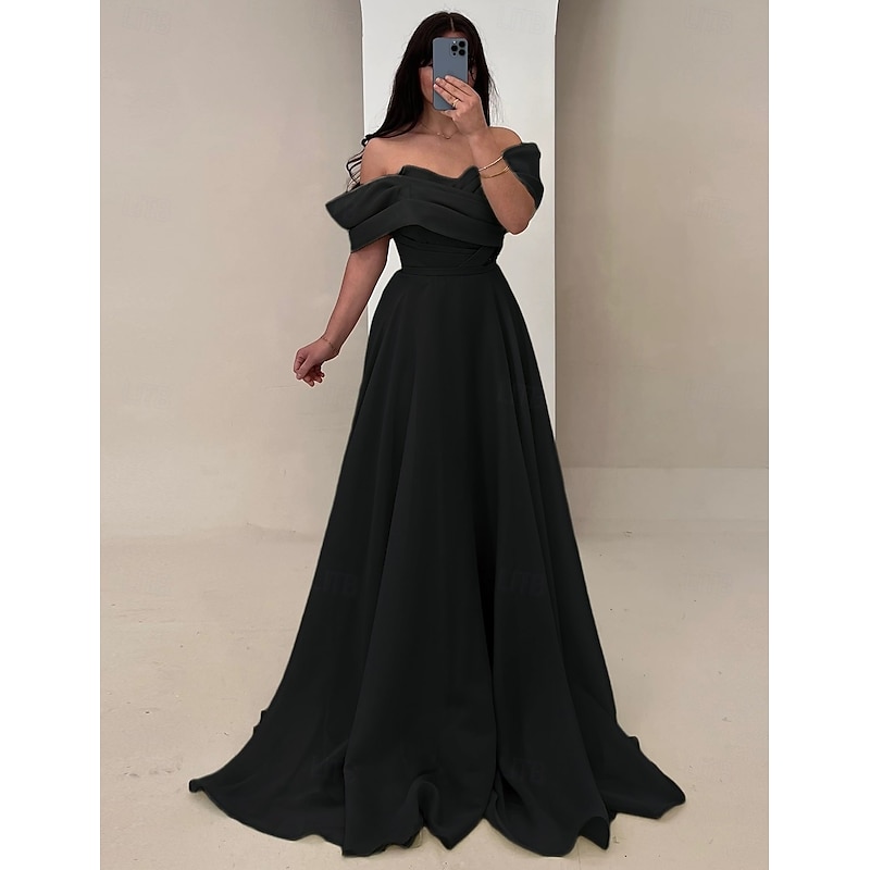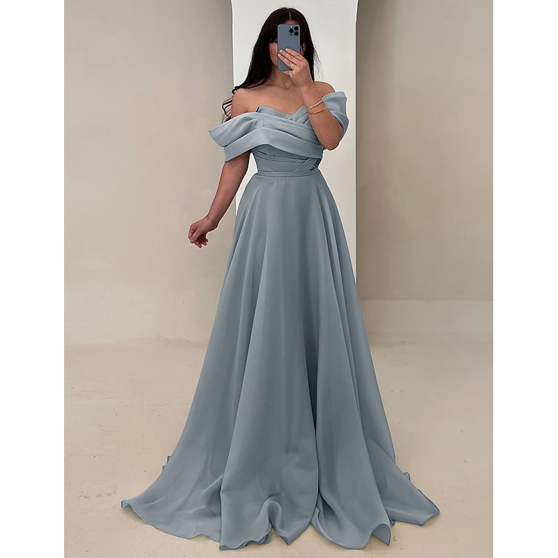 More information about A-Line Evening Gown Elegant Dress Formal Wedding Floor Length Sleeveless Strapless Satin with Ruched