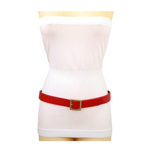 Women Red Skinny Belt - Hip High Waist Basket Weave Band Gold Square Buckle S M z075 6