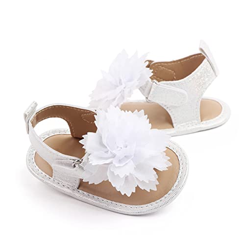 Baby Toddler Sandals Infant Girls Boys Shoes Flowers First Walkers Crib Shoes Anti-Slip Soft Sole (White, 3.5 Toddler) 6