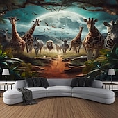 HOT ! African Safari Wild Animals Hanging Tapestry Wall Art Large Tapestry Mural Decor Photograph Backdrop Blanket Curtain Home Bedroom Living Room Decoration